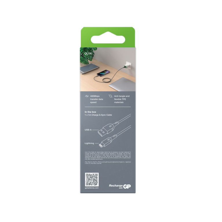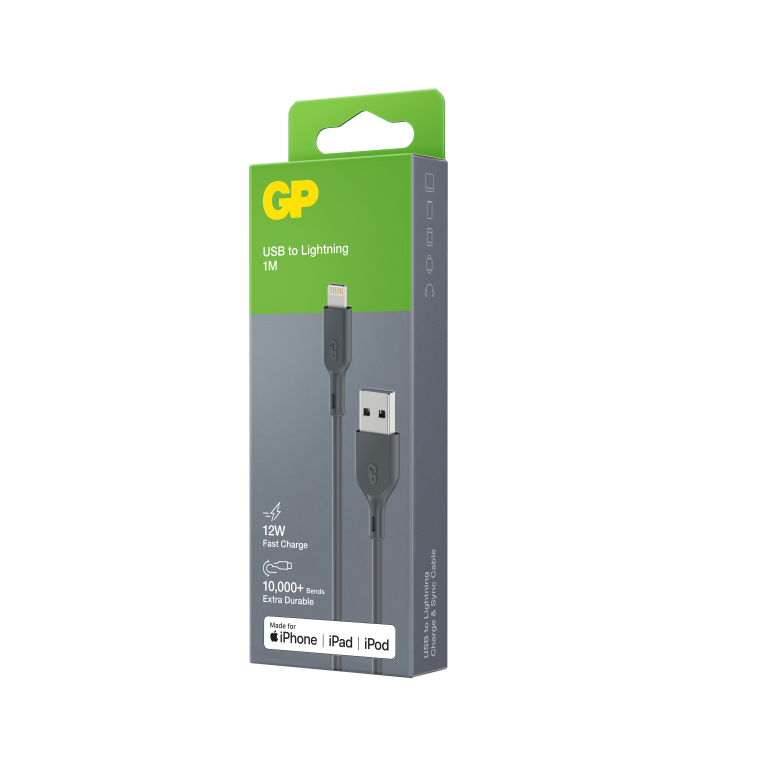 GP Charge & Sync Cable is the perfect cable for your daily use. The cable is crafted with flexible materials which allow it to be stretched and bent 10,000+ times without breaking. MFi-certified and with a maximum 12W output, it is perfect for Apple products. The cable supports 480Mbps hi-speed transfer of all file types, data can be transferred in a flash