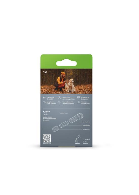 • ANSI FL1 standard: Lumens: 300 lumens Beam distance: 100 meters Run time: 15 hours Shock proof: 1 meter Water resistant: IPX4 • Beam type: Adjustable Flood & Spot • LED chips: Cree • Dimension: Ø32 x 108 mm • Weight (with batteries): 120.5g (approx.)